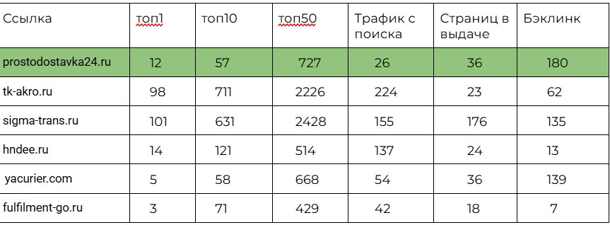 Также мы провели анализ конкурентов в нише логистики и фулфилмента: