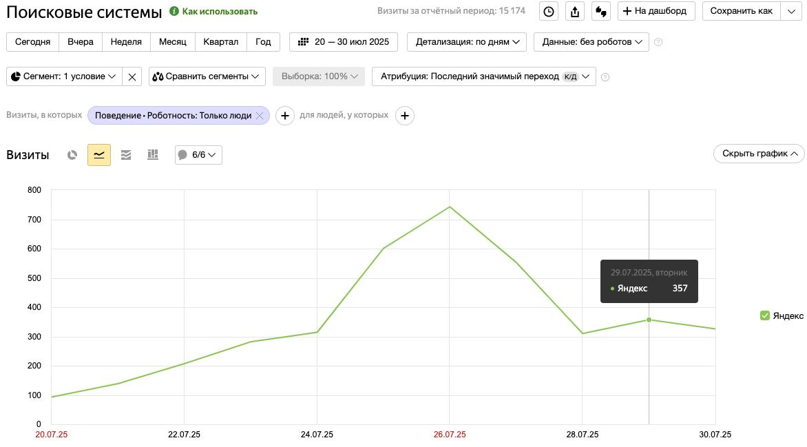 Было: ~100 визитов в день из поиска